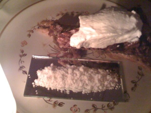 I love sake in cans.  But in all honesty nothing quite compliments pecan pie quite like powdered sugar with that subtle hint of, oh, bacon.  How I didn’t spit sake over the pie when I saw the mirror I do not know.