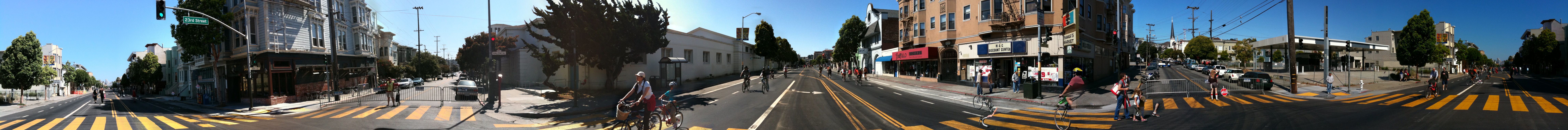Been a while since we have done a 360 panorama – click to ZOOOM 23rd and Valencia in all of its autoless glory (including several ghost bikes…)