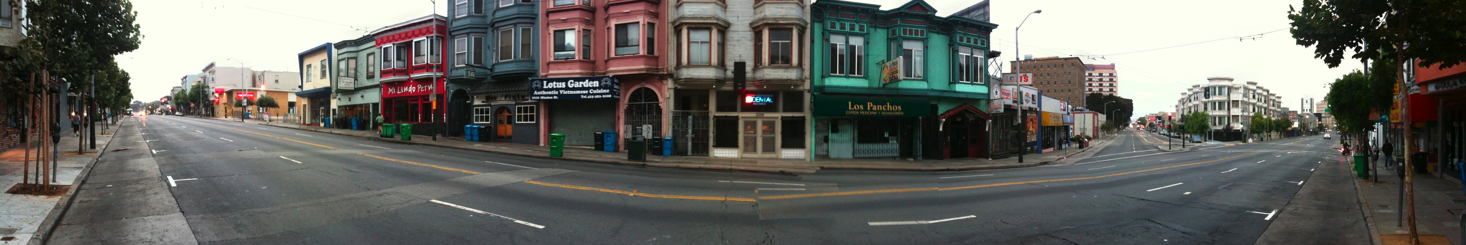 Mission at Valencia, 7 am, street cleaning day. Ghostly. More runners than cars in the heart of La Lengua.