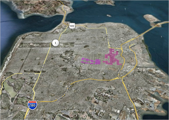 Pedaling the rectangular city blocks in San Francisco, Vicente Montelongo, 32, a graphic artist, realized the street layout lent itself to the pixeled shapes of vintage 1980s video game characters like Pac-Man, Q*bert and Donkey Kong. Back home with a printed-out Google map and a pencil, he drew Pac-Man chasing a ghost over in the Sunset District and then set out on his bike, iPhone in tow, GPS mapping application on. After riding 8.6 miles in an unwavering line, he uploaded the GPS track data from his phone, and had his picture.