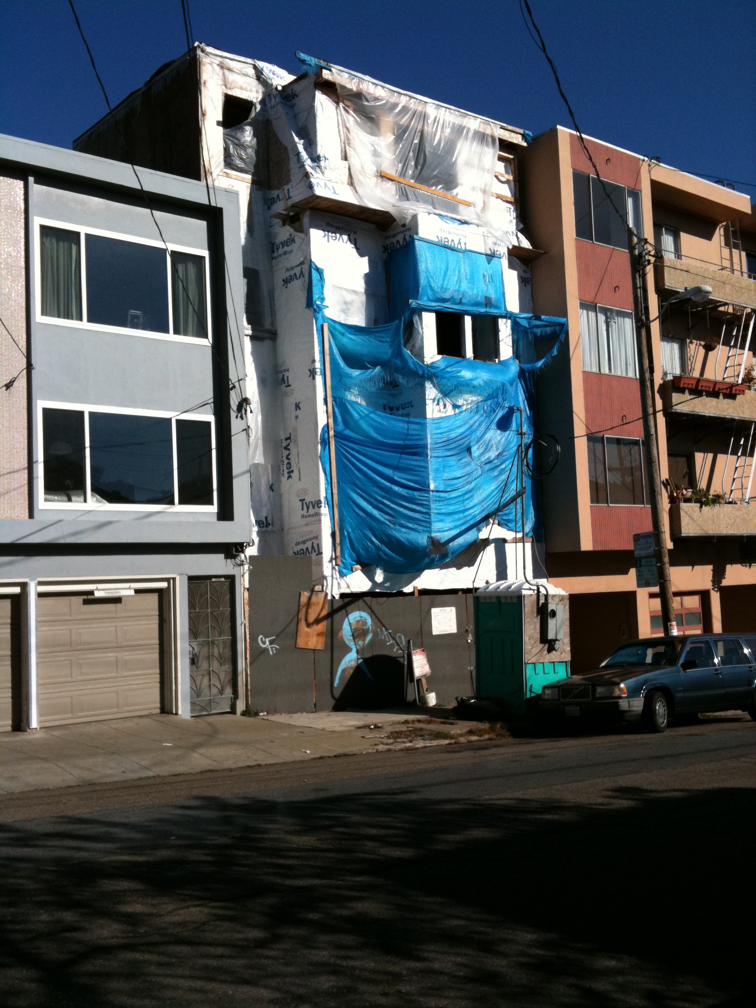 We lived around the corner from this eyesore for years. Every night the tarps go flapping around in the wind whistling down Twin Peaks and make a lot of noise. Ugh!