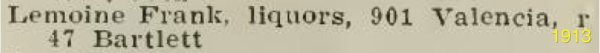 Sometime after 1904, In 1909, the bar was taken over by Frank Lemoine.
