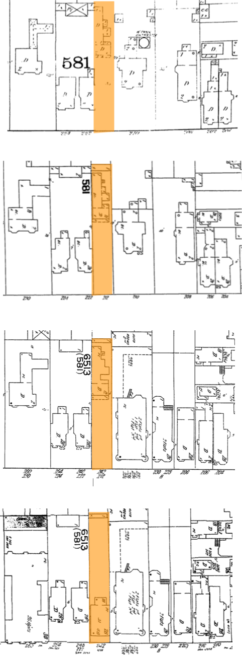 You can see the progression on this block of San Jose Ave from 1889 to then (and effectively today). 1889, 1900, 1915, 1950. (Rotated with west up, north to the right.)