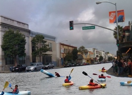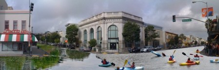 Cool map! We had a helluva time making a San Francisco map with basically 2-dimensional boundaries, back when we did it in 1996 for our first iteration of Shaping San Francisco. I like yours better, mostly because you have more neighborhoods! We had weird limitations in memory space, so we had 22 neighborhoods, which led to some really odd ones like Western Addition+ and TenderNob+… anyway, very nice! and I like the 22nd and Valencia canals… have you seen my novel “After The Deluge”, a San Francisco partially under water in 150 years?… I’ll give you one!