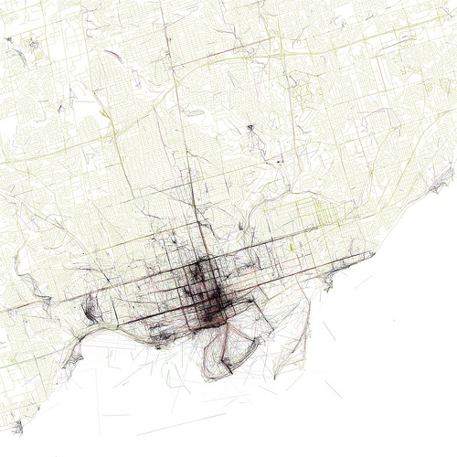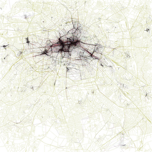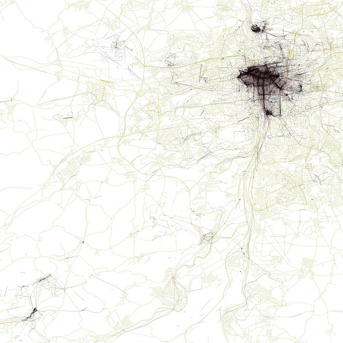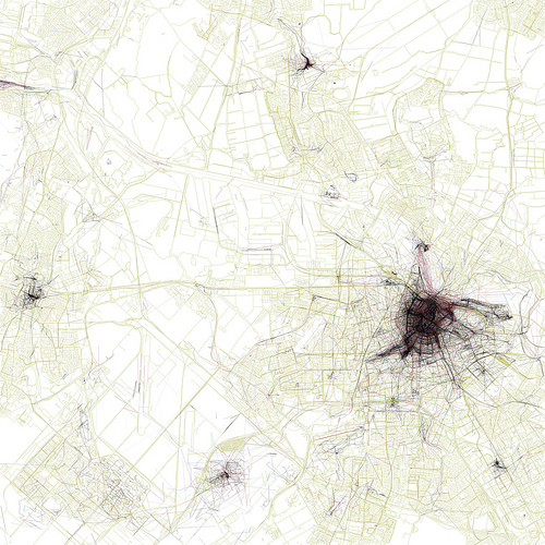 Eric Fischer, yet again delivering awesome. Armed with nothing but the Flickr and Picassa APIs, OpenStreetMap, Perl and Ghostscript, he has recreated the world (or at least the vectors of photographers in 20 50 important cities).