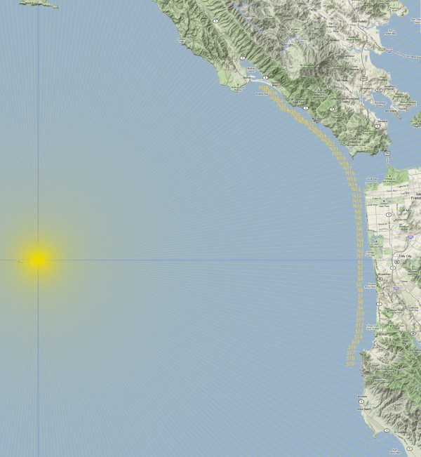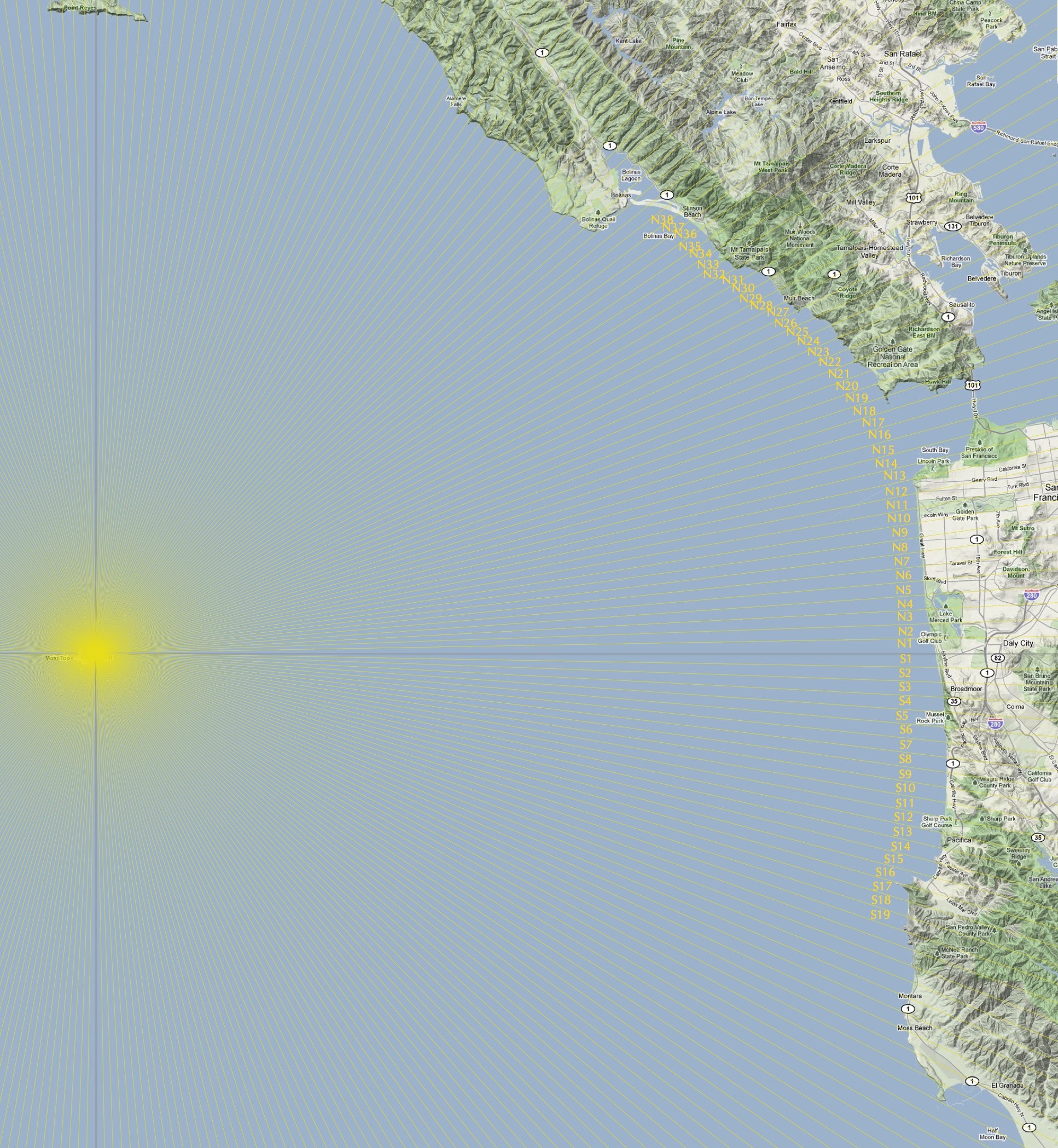 @bradvertising figured out how to map one degree SF-Farallon wedge: