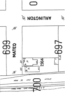 Anyway, Charles and Milton are way the hell apart but it sure looks like the same house and tree up on the top of the cut. Could it have been the house at Mateo and Arlington? 1899 map below.