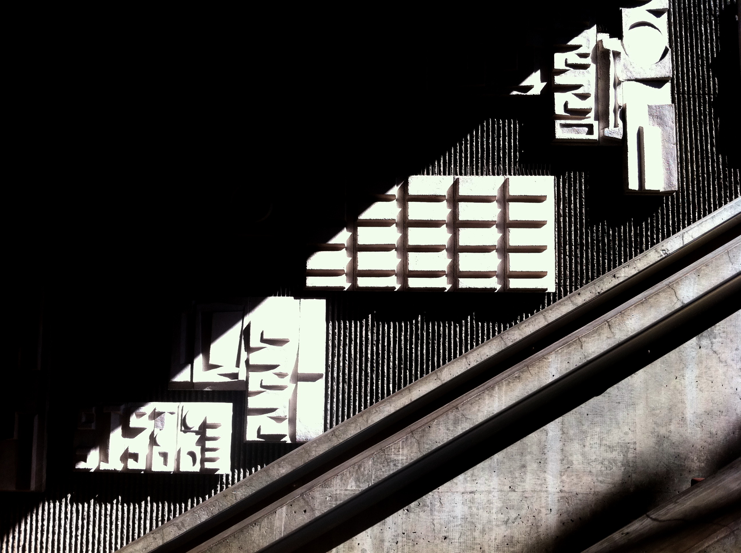 Oh, wait, that’s no Death Star, it’s just what I think when I go up the escalator and mentally create kaleidoscope images with the brutalist architecture.