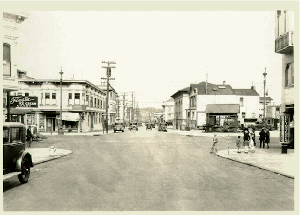 Another view looking south towards Bernal where you can see a lumberyard and a proto-fixie.
