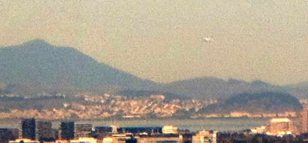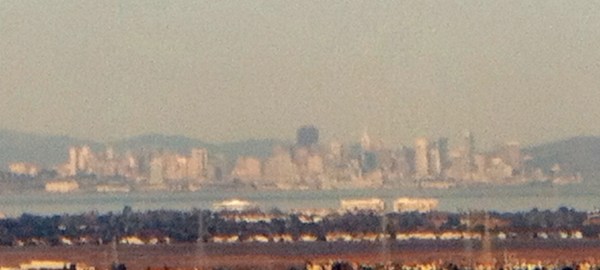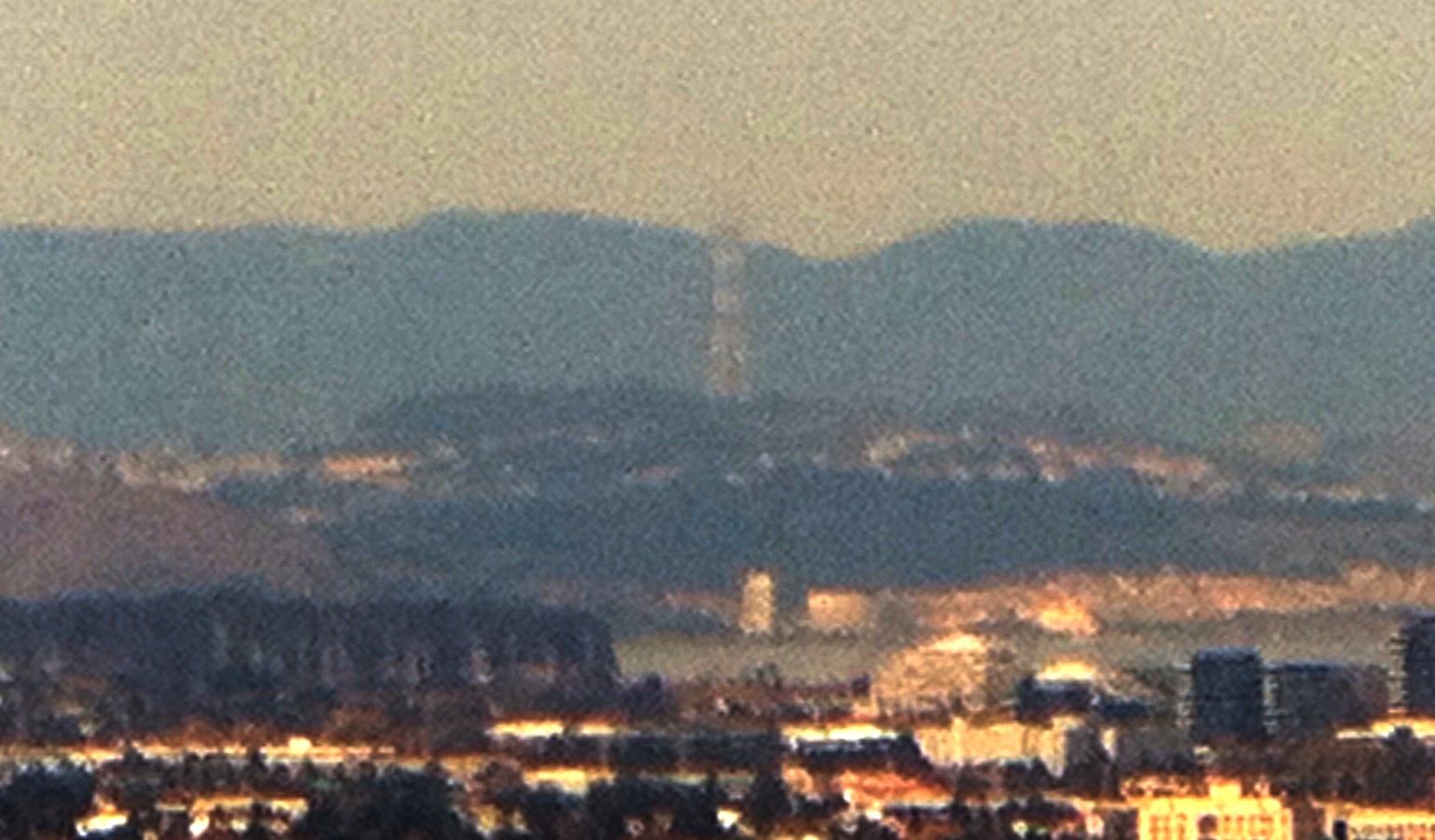 10,000 pixel wide panorama from Sutro to downtown SF to TI, taken from the Dish, above Stanford. (iPhone + PhotoJojo lens, 7 shots, click to zoom):