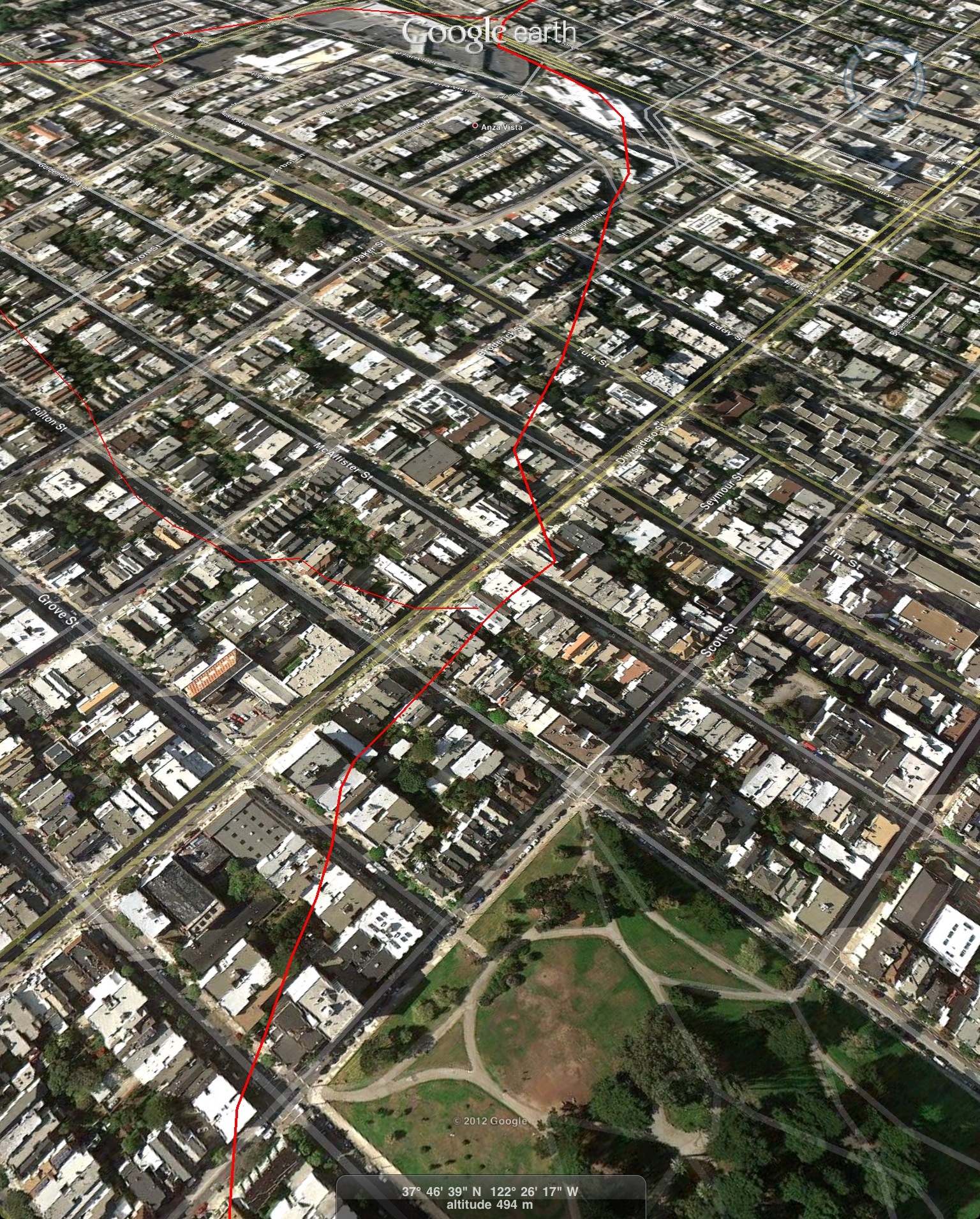 To the west of Alta Plaza Park: