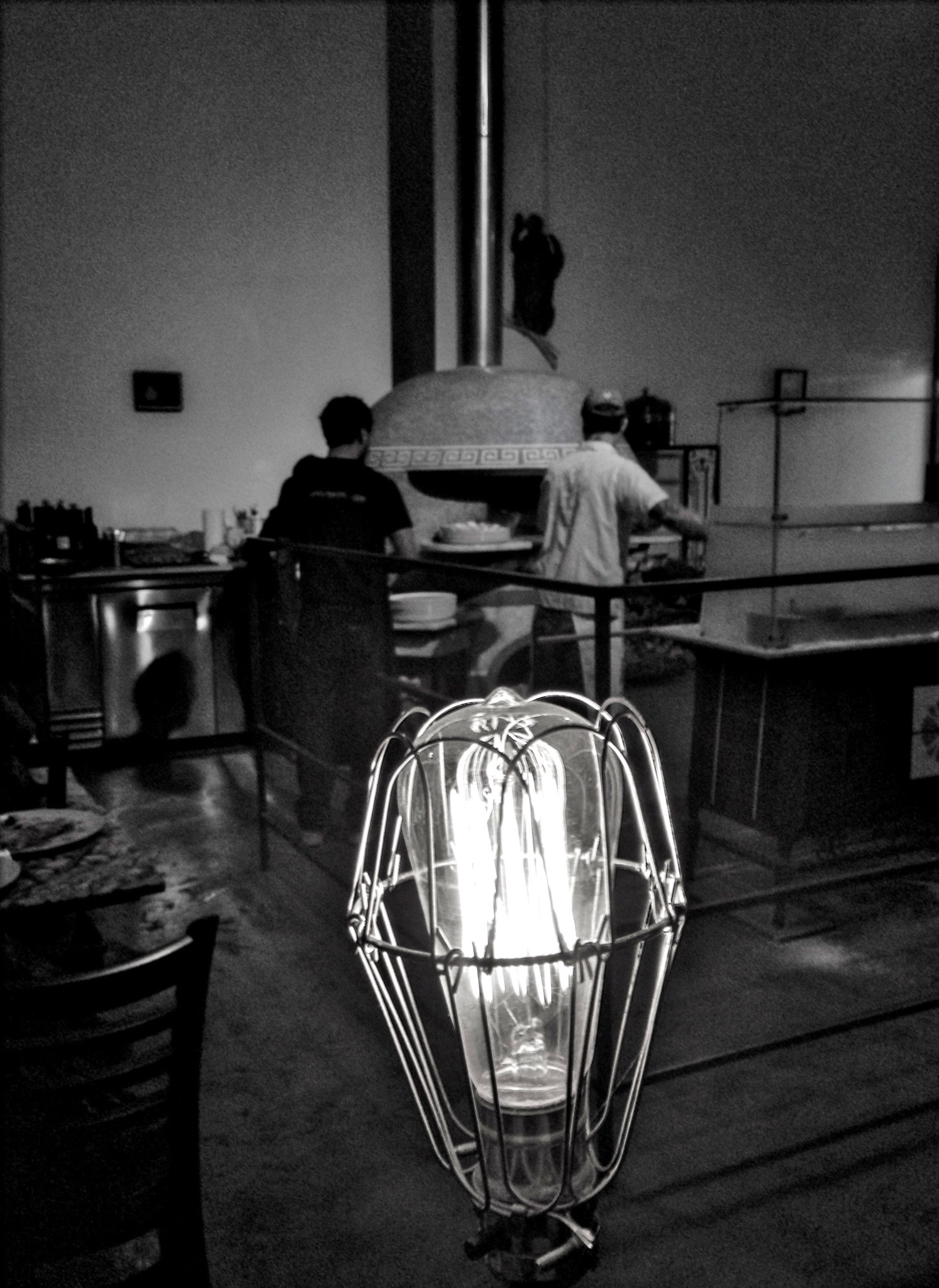 Few know the true secret of Una Pizza Napoletana is cooking over a giant multi-filiment lightbulb.