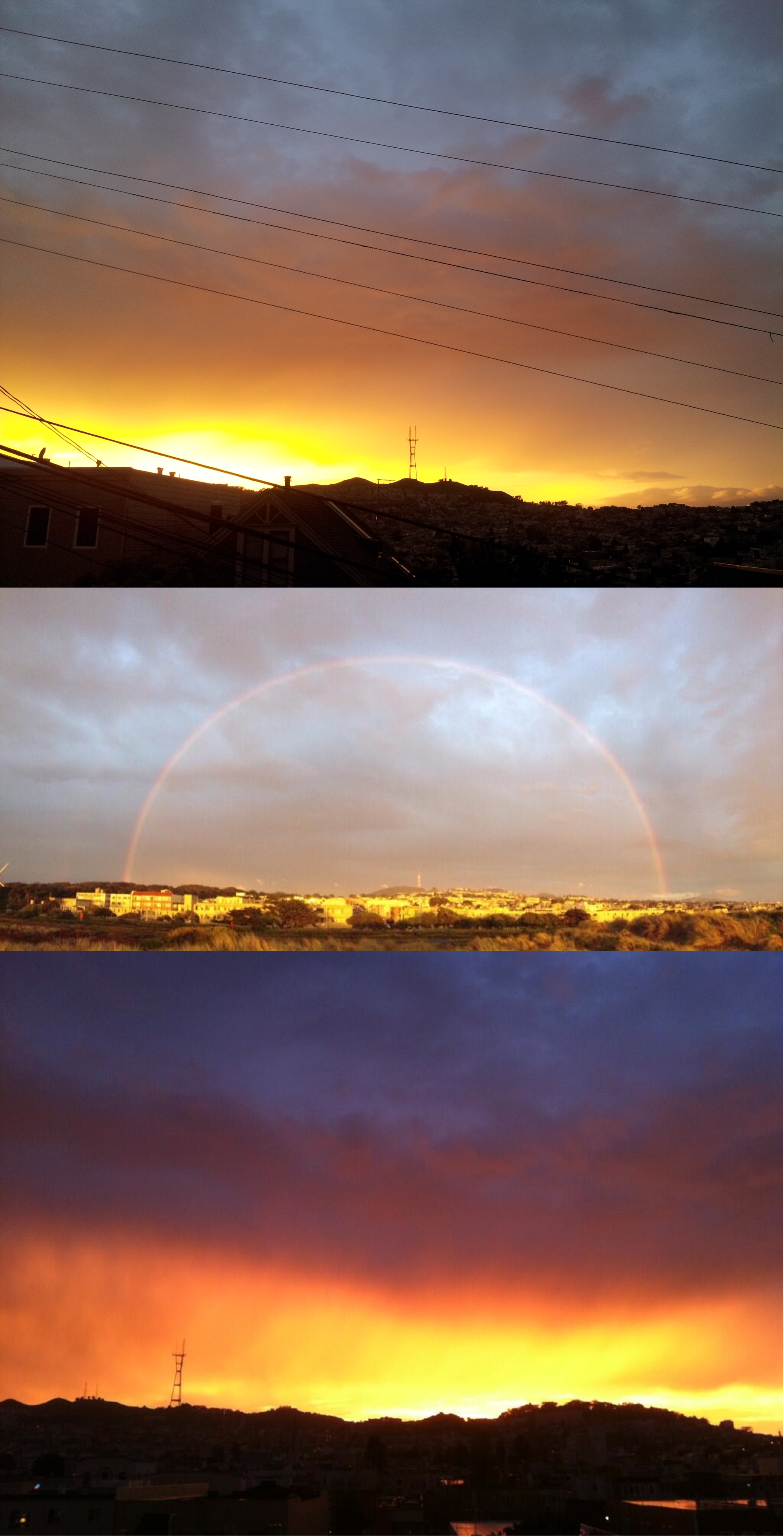 A glorious sunset in San Francisco. Matched by a rainbow in the other direction. At the same time.