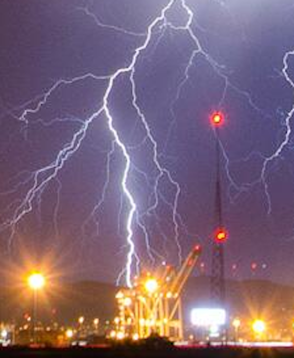 Last night’s lightning revealed many secrets about Bay Area infrastructure. First, this photo by @wxmann reveals exactly how Imperial AT-ATs are made: