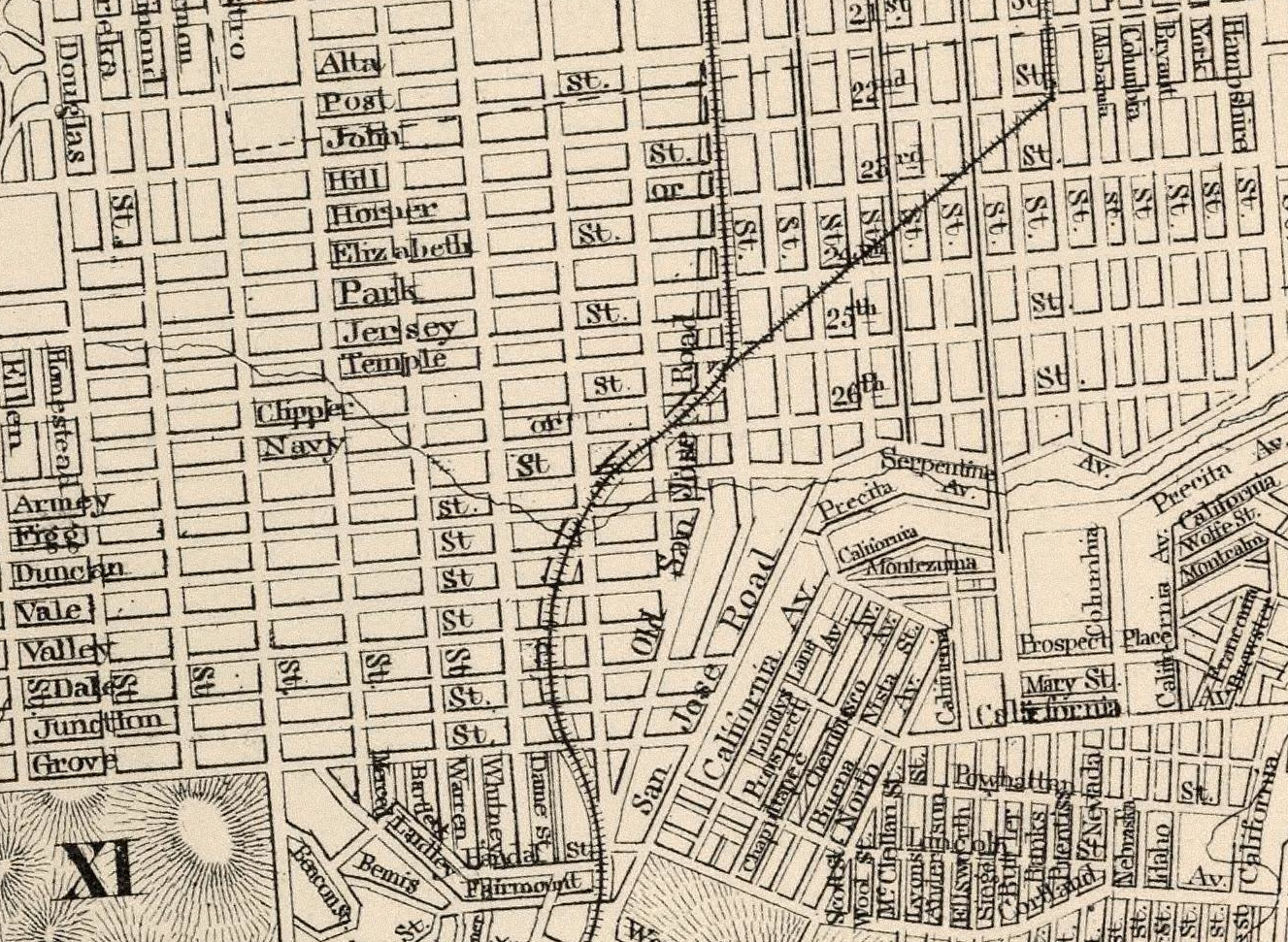 And the 1886 Sanborn maps don’t make any reference to 27th on the other side of San Jose/Valencia/Mission either: