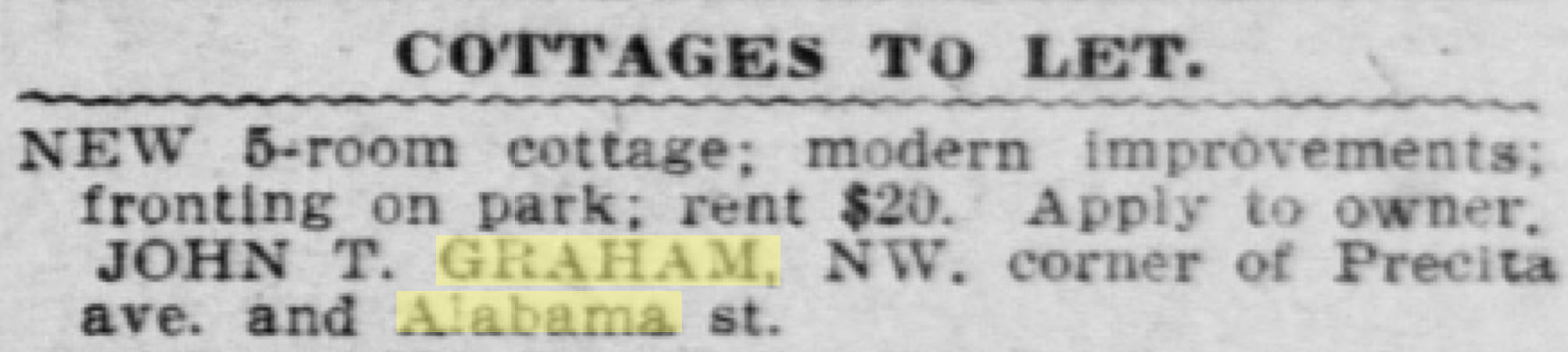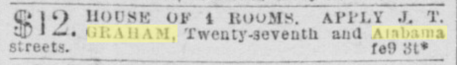 It looks like he owned a fair amount of property in the area, though in this 1898 ad, it is interesting he chose to live on the other end of Alabama St (278 is near 16th…)