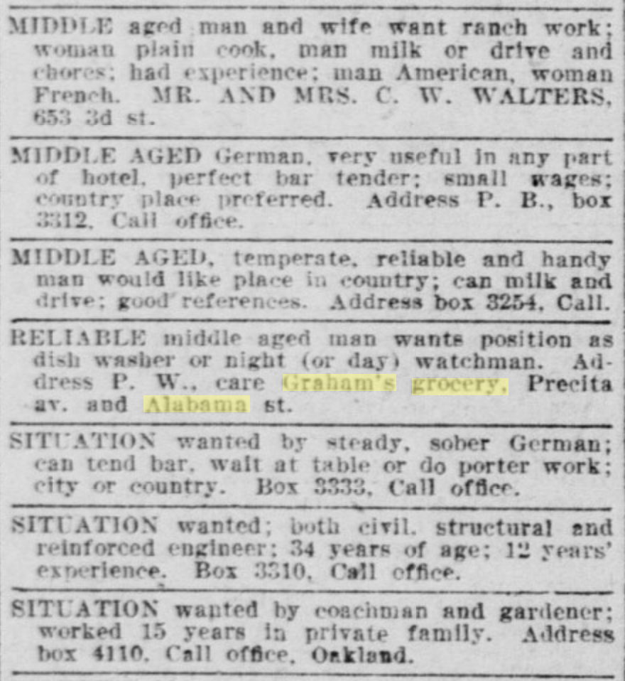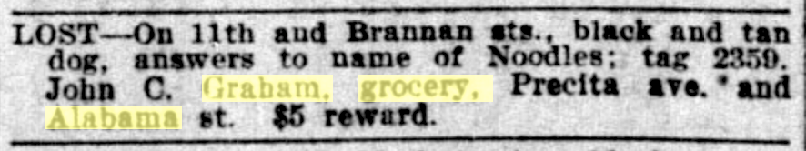 Despite the garrulous nature of Bernal residents, it seems that Thomas Graham ran his grocery at the corner of Precita and Alabama for quite some time.