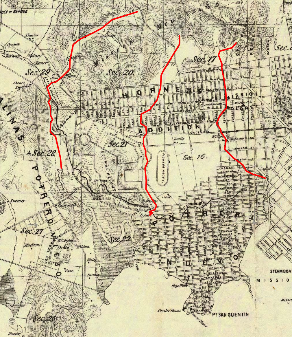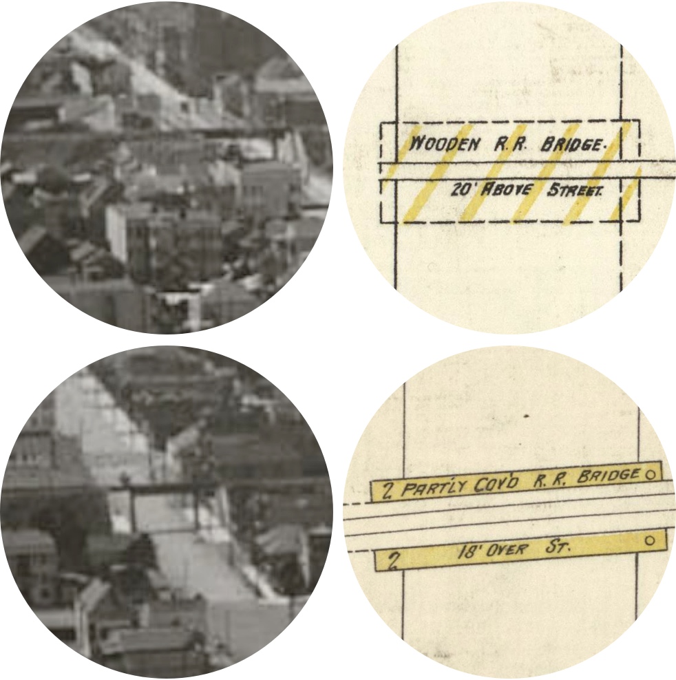 I knew there were bridges over each street, as we’ve seen them from the 1907 photo from atop Bernal…