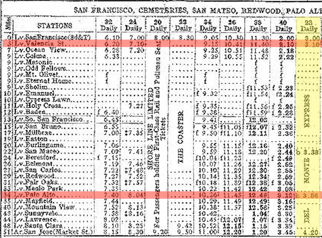 Yes, you could make it in 46 minutes from Valencia St to Palo Alto in 1907. You’d be hard-pressed to *drive* to Palo Alto in 46 minutes from 24th & Mission today, even without traffic.