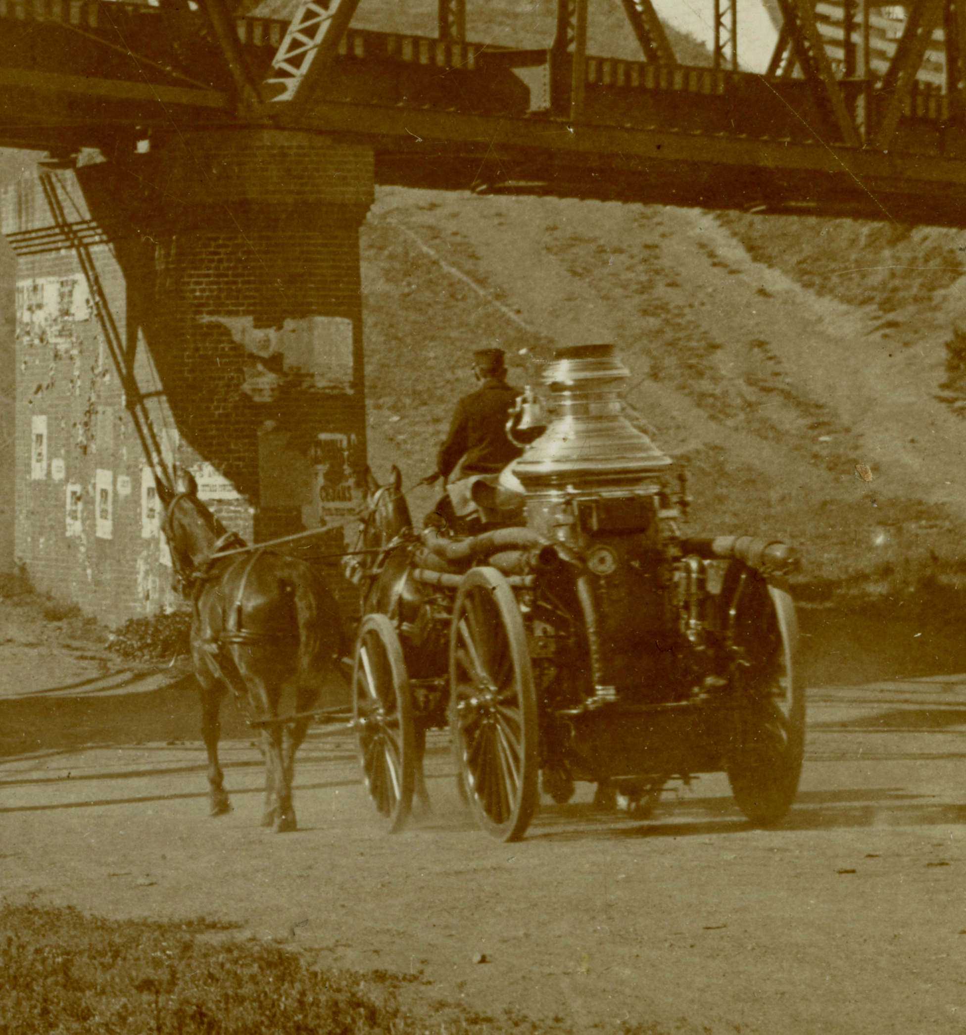 Just kidding. It’s the Anchor Steam truck. OK, OK. It’s a steam fire engine. IANAFM, but from the shape of the boiler and location of the bell, I’m guessing it’s a Nott: