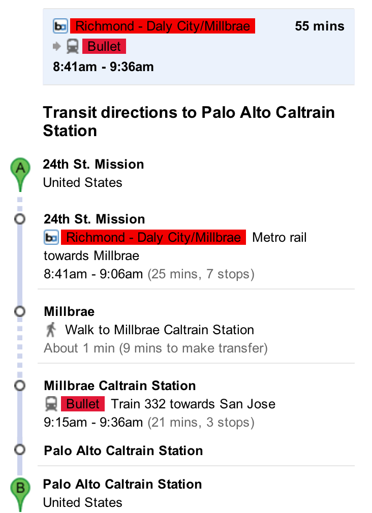 As far as I can tell, the fastest possible BART/Caltrain connection you can make today is 55 minutes. (It’s more typically an hour or 1:05 in my experience, but feel free to comment if you are one with that commute.)