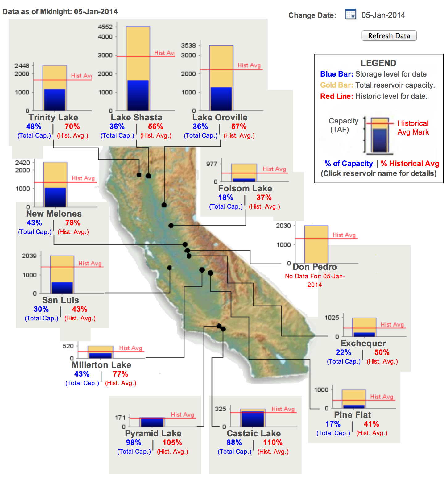 The drought, it is coming. Rainfall totals for various Northern California cities in 2013 via the Mercury News.