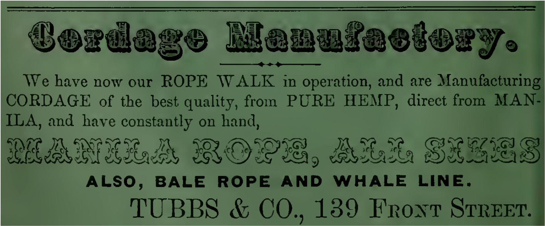 1858 & 1859: “Not only do we excel in rope and cordage, but our choice of typeface cannot be beat.”