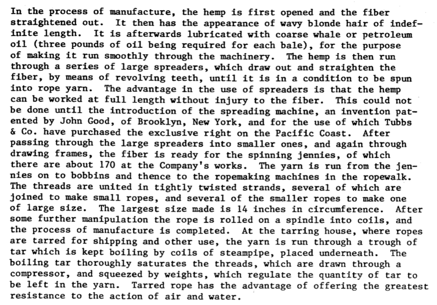 An ad in the California Daily Alta from January 1857 (around the time that the photo above was taken) proclaims “the establishment of a very superior rope walk” — a bit defensive perhaps, but they must have been seriously pissing off the folks shipping rope from the East Coast in clipper ships around the horn.