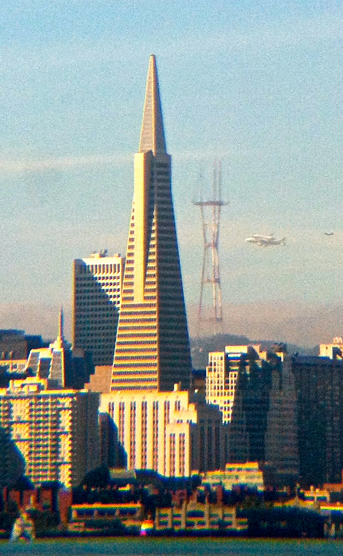 I tried to get a Sutro-Endeavour shot on the second pass with the real camera, but autofocus lag and the Transamerica Pyramid betrayed me. But thankfully, SomaFM must have been standing