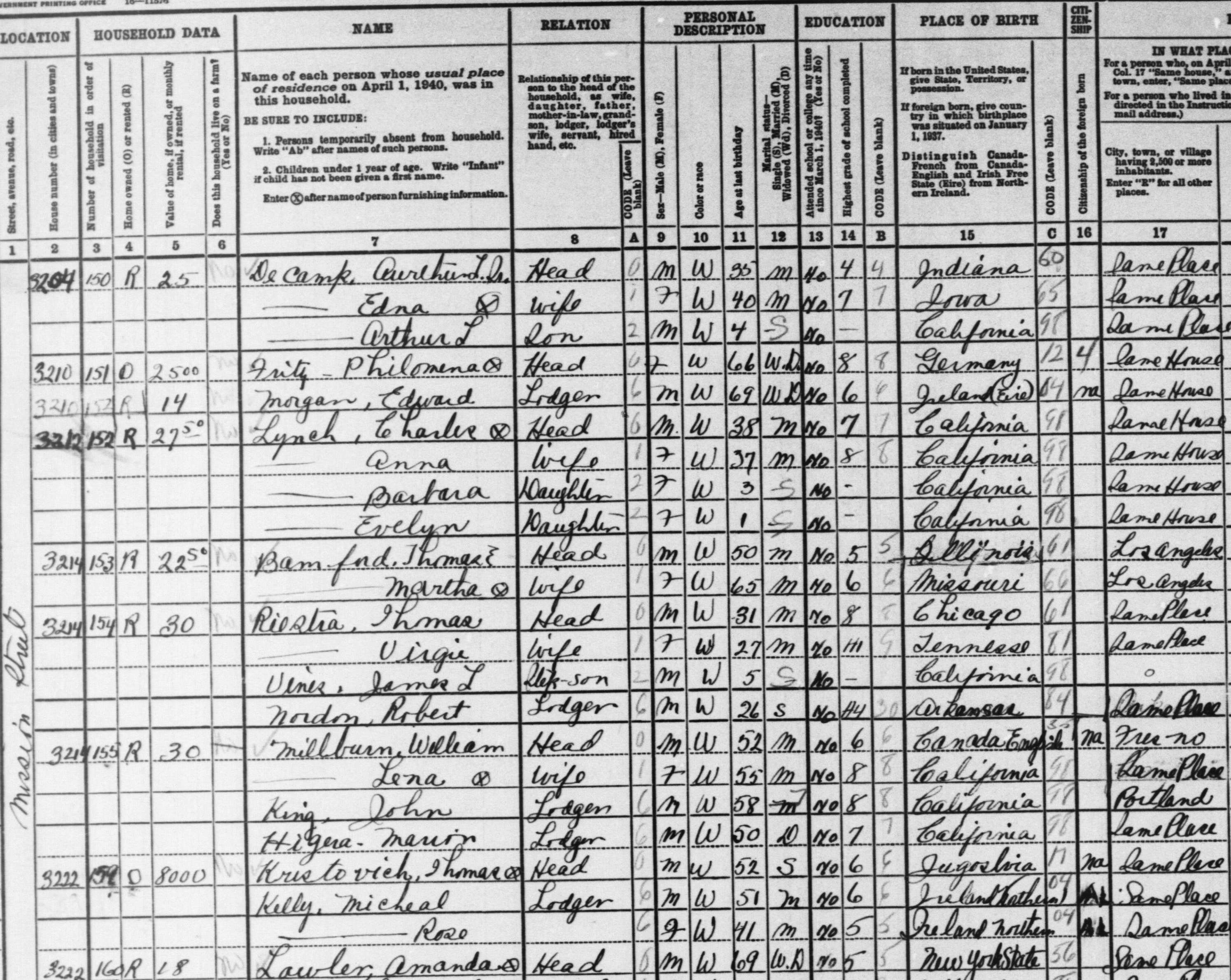 Their next-door neighbors in 3214 were the Bamfords, originally from LA. He was a shoemaker who made $60 a month but paid $30 a month in rent.