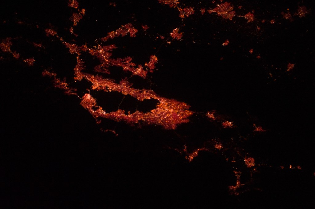 Via the impressive On Orbit site, behold San Francisco Bay as seen from the International Space Station in the infrared (on Christmas Eve no less):