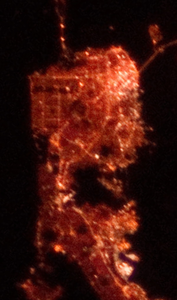 But some of the really bright spots are odd. Is that Mission and 24th? And what’s the giant white blob to the southwest of McLaren Park? Broken Record? And what’s that one to the east of GGP — Nopa?