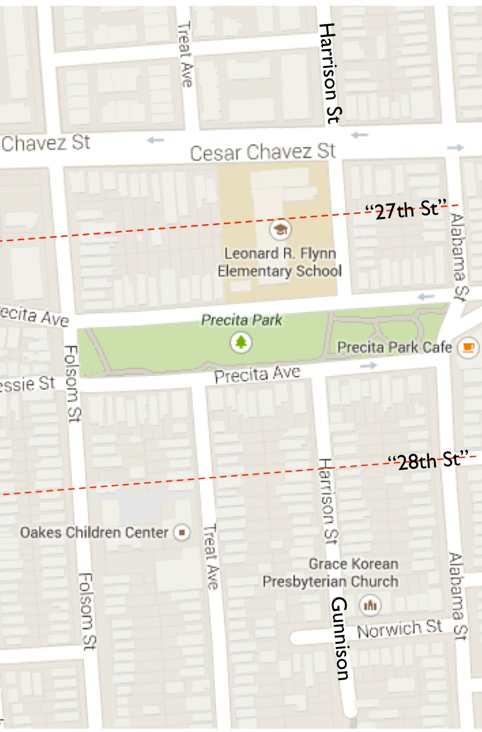 And then there’s the mystery of 27th and 28th streets extending Precitaward. I have seen this in a number of directory entries of that era (remember Graham’s Groceries, which was just around the corner, and the Bad Characters of Bernal Heights?)