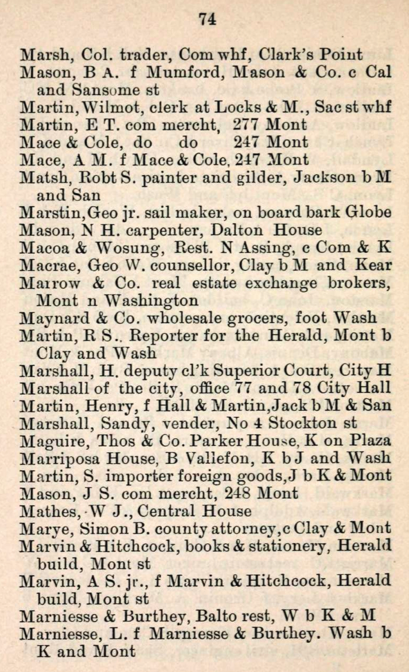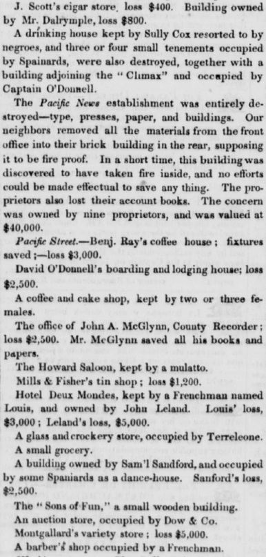And in addition to the play by play of the fire’s path, the Daily Alta also published fascinating list of all the businesses lost. Here’s just a sample: